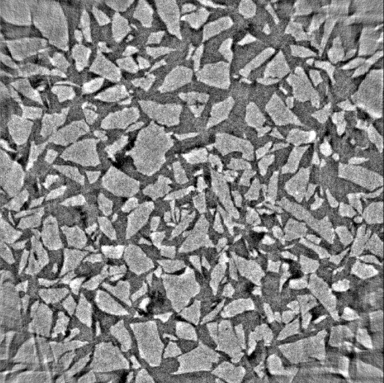 Conjugate Gradient for Least Squares (CGLS) is an iterative approach to solve the reconstruction problems via least-squares minimisation. The algorithm aims to solve the system of normal equations \(\mathbf{A}^{\intercal}\mathbf{A}x = \mathbf{A}^{\intercal} b\), where \(\mathbf{A}\) is the forward projection or geometry matrix, \(x\) is the sought solution (reconstructed image), \(b\) is the vectorised projection data, and \(\mathbf{A}^{\intercal}\) is the inverse projection operator.